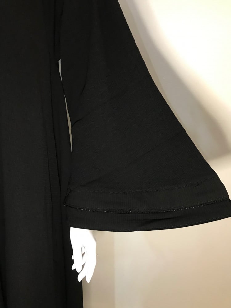 عباية كلوش كُم واسع مع تطريز سلسال خفيف